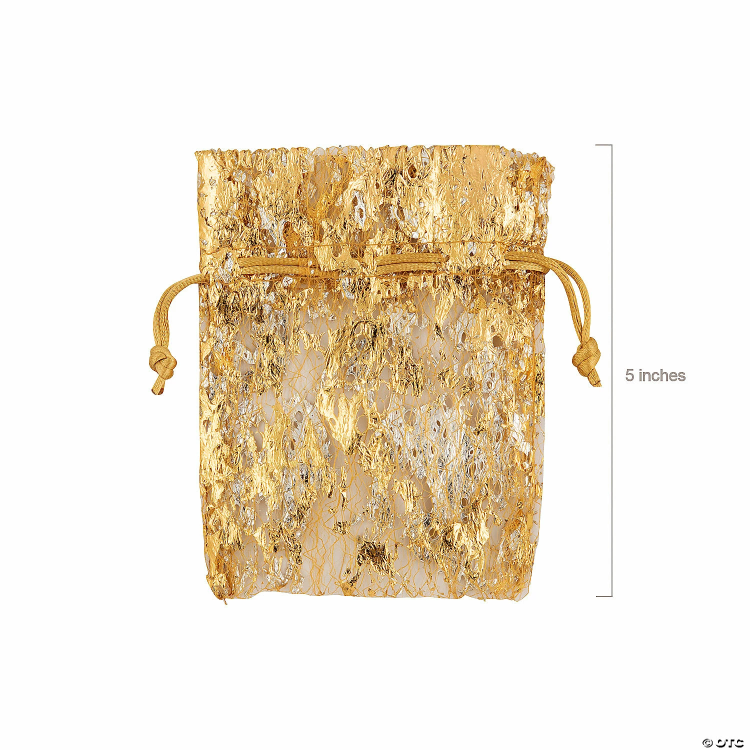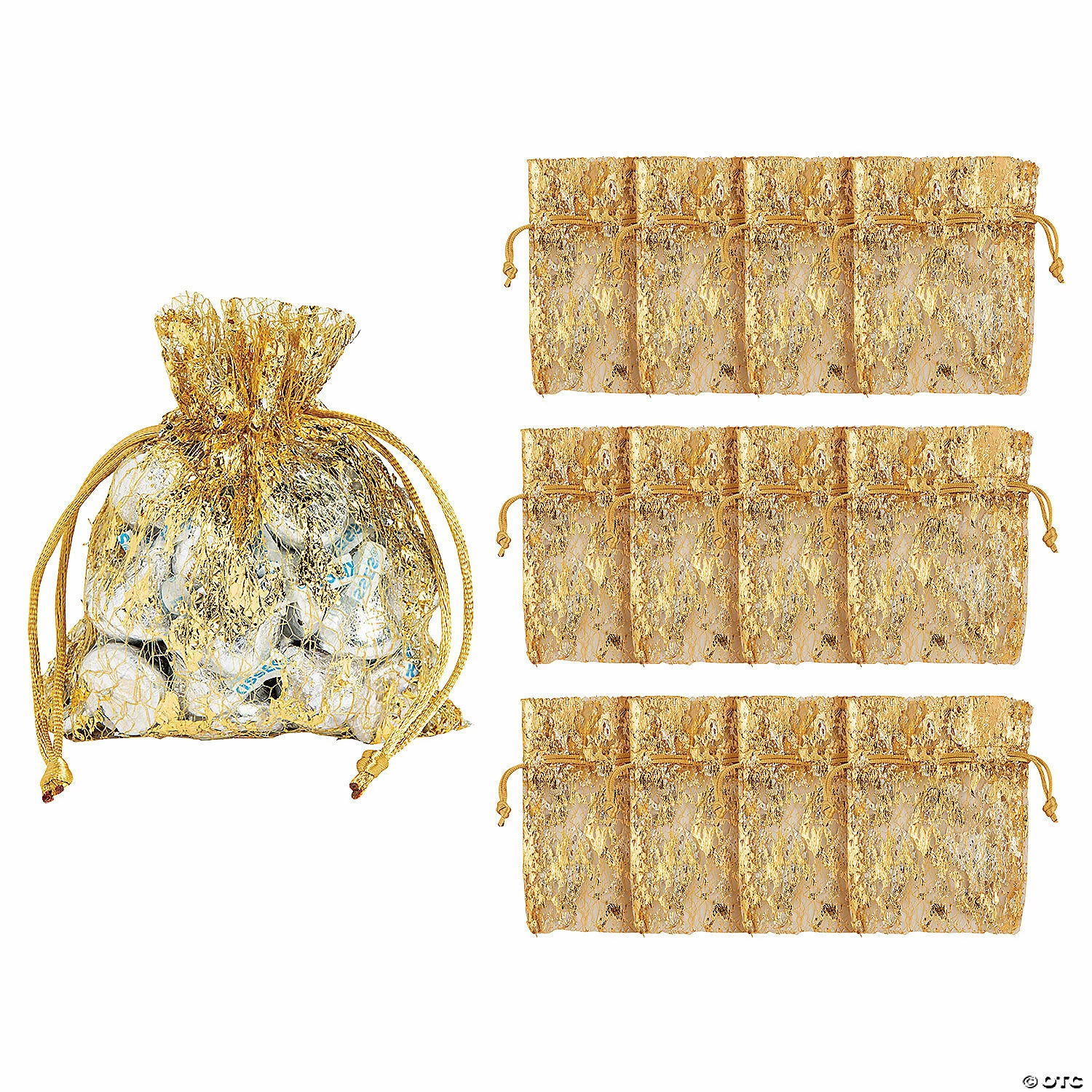 Buy ⌛ 4″ x 5″ Mini Gold Metallic Organza Drawstring Bags – 12 Pc. 🎁