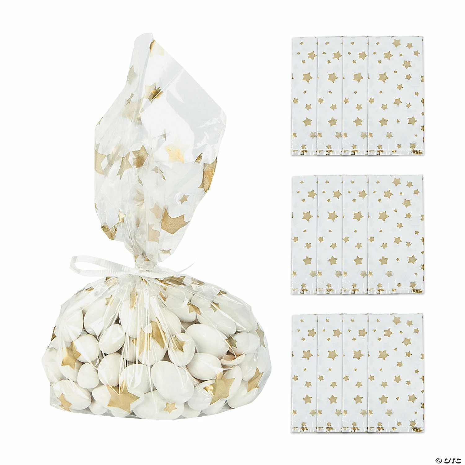 β’ Perfect Size for Parties: These treat bags are just the right size for candies. Fill them up with tasty treats and hand them out as party favors at your next birthday party, holiday gathering or wedding reception! β’ Say Thanks with Sweets: Are you looking for an easy way to thank the people in your life? These multipurpose bags filled with great snacks are a sweet way to spread appreciation among party guests, students and teachers, or employees!β’ Sweet Style: Display your delicious delights or party favors in style with these fun bags! You can make a decorative statement at any event with these bags, a few treats and some stylish twist ties.β’ Travel-Friendly: Once the party is over, your guests will be happy to take home your favorite cookies, cake pops, cupcakes or other baked goods in these easy-to-carry bags. Product Description:Terrific treat bags for tasty goodies! These shining gold star cellophane bags are fun, festive, and ideal for celebration treats. They’re stellar for every occasion; use them at candy buffets, to hold birthday party giveaways, or fill them with Christmas cookies and sweets. Versatile, trendy, and oh-so-bright! Ties not included. Size: 5 1/2″ x 3 1/4″ x 11″ Quantity: 12Material: CellophaneΒ© OTC