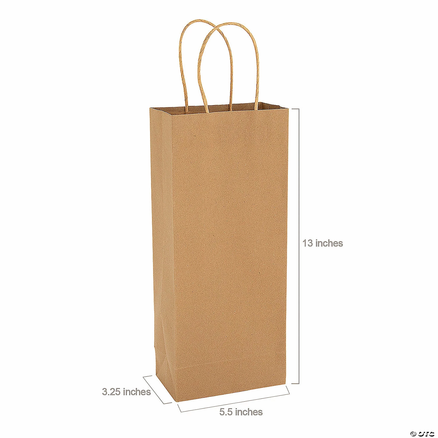 β’ All Occasion Use: These versatile gift bags are perfect for year-round gift-giving. From birthdays to baby showers to anniversaries and more, these bags are ready for any occasion! β’ Reusable: Go green with this eco-friendly gift bag! They could even be reused for future gifts.β’ Easy Gift Wrapping: These sturdy gift bags are suitable for holding a variety of presents and come with easy-to-carry handles. They make wrapping any gift easy breezy!Product Description:Gift wine elegantly with these chic Kraft paper wine bottle bags. The simplicity of the bags allow recipients to focus on whatβs really important: the gift of wine! These bags also work great for gifting slender water bottles β perfect for a gift exchange. Add ribbons or bows for a holiday gift or keep the bags plain and chic for gift-giving.Size: 5 1/2″ x 13″Quantity: 12Material: Paper.