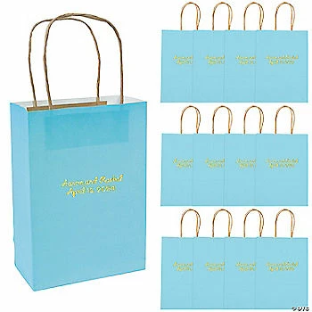 Flash Sale 🔥 6 1/2″ x 9″ Light Blue Medium Personalized Kraft Paper Gift Bags with Gold Foil – 12 Pc. ❤️