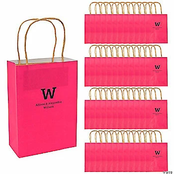 New ๐ 6 1/2″ x 9″ Medium Hot Pink Personalized Monogram Kraft Paper Gift Bags – 48 Pc. ๐