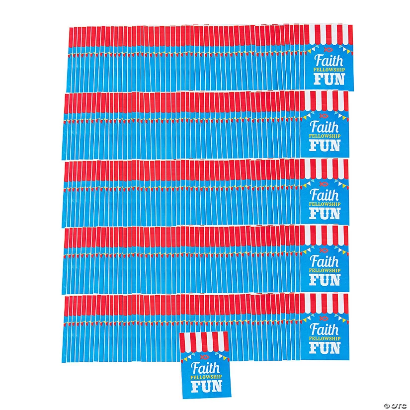 โข Perfect Size for Parties: These treat bags are just the right size for candies. Fill them up with tasty treats and hand them out as party favors at your next church event!โข Sweet Style: Display your delicious delights or party favors in style with these fun bags! You can make a decorative statement at any church gathering with these bags and a few treats.โข Say Thanks with Sweets: Are you looking for an easy way to thank the people in your life? These multipurpose bags filled with great snacks are a sweet way to spread appreciation among pastors, Sunday School teachers, or volunteers!Product Description:Celebrate faith, fellowship and fun with these colorful treat bags! Featuring a faith-based carnival theme and patriotic colors, these treat bags are perfect for a church carnival or religious patriotic celebration. Be sure to check out all the great religious carnival treat bag stuffers available right here on this website. Size: 7″ x 9 1/2″ with cutout handle.Quantity: 250Material: Plastic.