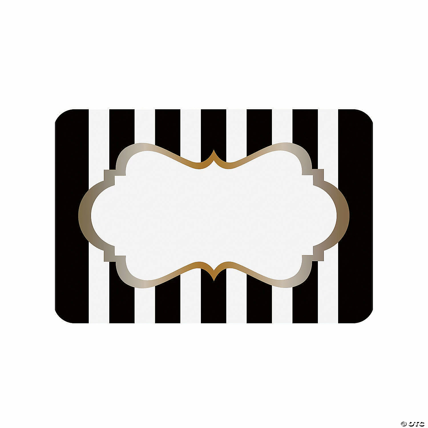 With these stickers, add chic style here, there, everywhere! A great addition to wedding decorations, these shimmering stickers come printed with a glamorous black, white and gold pattern, with space to add a message. When creating favor bags filled with candies or mints, add these stickers for a fun way to say “thank you” as guests head home. Or, these can be used on water bottle labels, to create place settings or seal envelopes. The options are endless! Paper. (100 stickers per roll, shrink-wrapped) 3 1/2″ x 2 1/2″ ยฉ OTC