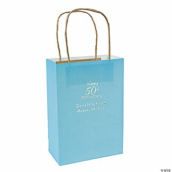 Best Pirce ๐ Light Blue Medium 50th Anniversary Personalized Kraft Paper Gift Bags with Silver Foil – 12 Pc. ๐งจ