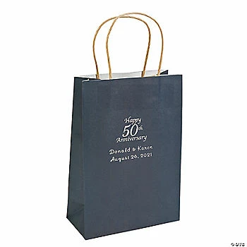 Cheapest ๐ฅฐ Navy Medium 50th Anniversary Personalized Kraft Paper Gift Bags with Silver Foil – 12 Pc. ๐