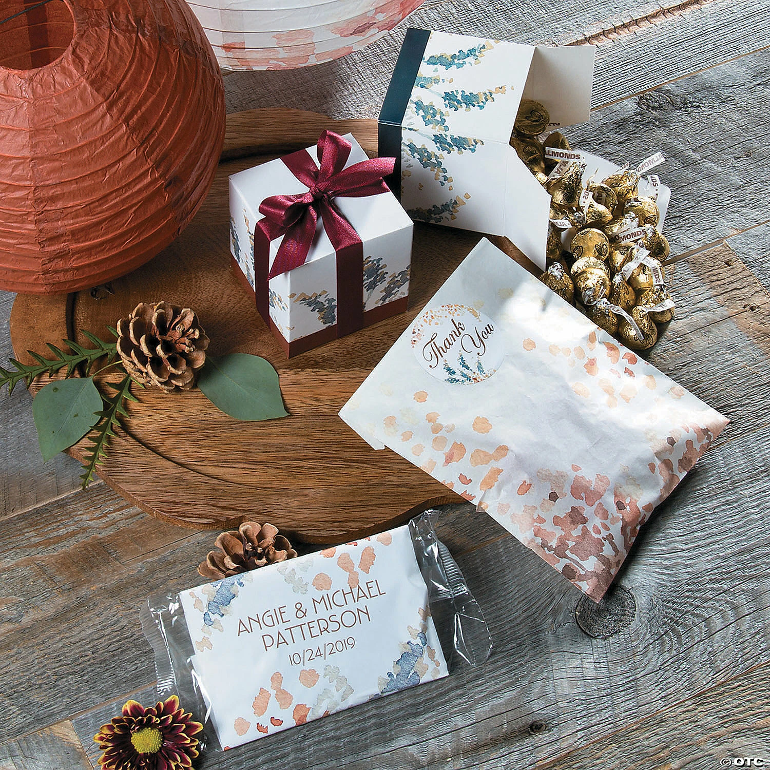 Say thank you with a fabulous touch of fall! A perfect addition to wedding stationery, these chic stickers can be used to seal envelopes for thank you notes or decorate favor bags given out at the reception. Each one features a shimmering foil design that reads “Thank You” in glitzy rose gold next to a watercolor image of fall leaves. Showing gratitude in style as sweet as this never goes out of style! (100 stickers per roll, shrink-wrapped) 2″ diam. © OTC