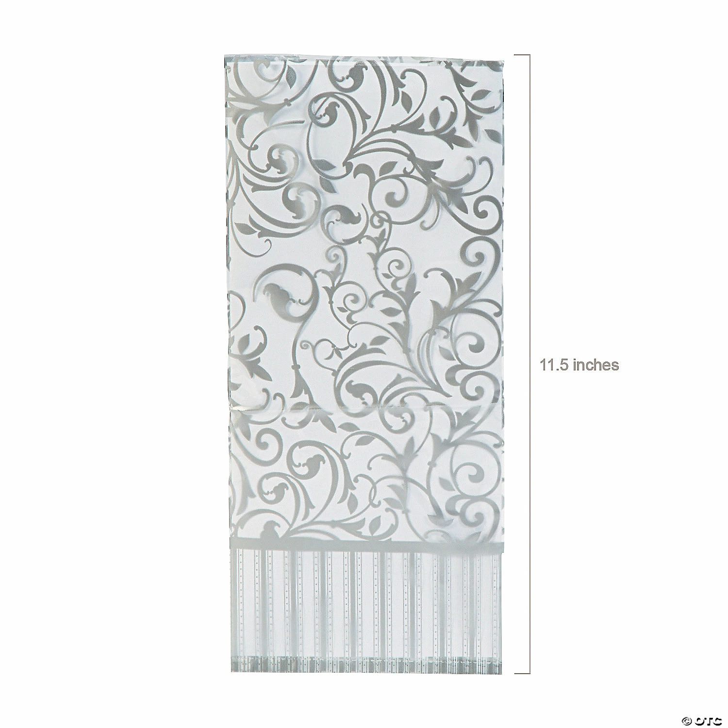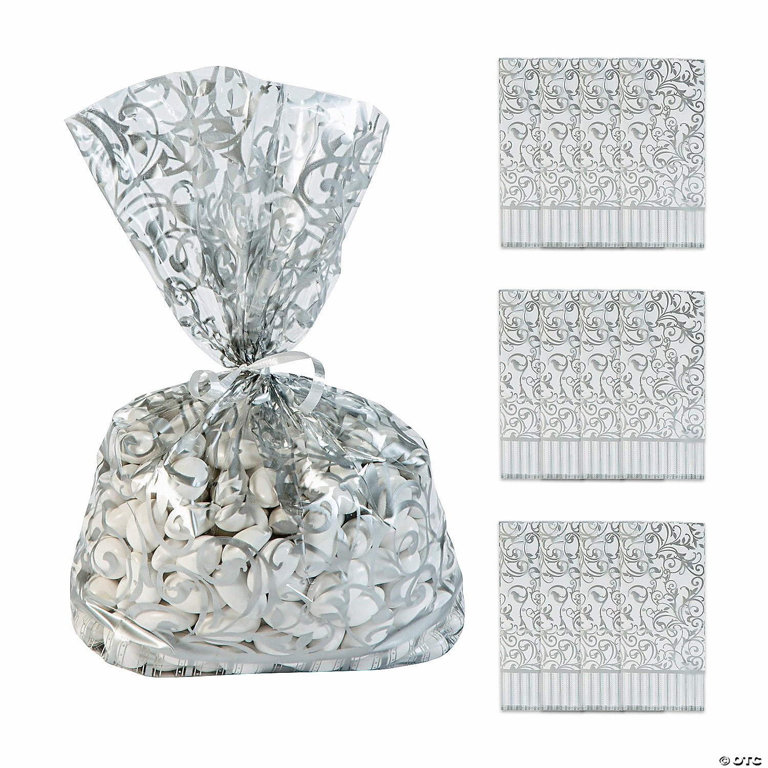 β’ Travel-Friendly: Once the party is over, your guests will be happy to take home your favorite cookies, cake pops, cupcakes or other baked goods in these easy-to-carry bags. β’ Say Thanks with Sweets: Are you looking for an easy way to thank the people in your life? These multipurpose bags filled with great snacks are a sweet way to spread appreciation among party guests, students and teachers, or employees!β’ Perfect Size for Parties: These treat bags are just the right size for candies. Fill them up with tasty treats and hand them out as party favors at your next birthday party, holiday gathering or wedding reception! Product Description:A pretty filigree design gives these cellophane bags a classic aesthetic. They’re a lovely addition to wedding supplies, and they give your candy buffet charm and vibrancy. Great for chic birthday parties, bachelorette parties, baby showers, and all-year general gift giving. Wrap your party favors up in style! Ties not included. Size: 5″ x 2 1/2″ x 11 1/2″ Quantity: 12Material: CellophaneΒ© OTC